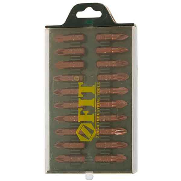 Применяются для работы с крепежными соединительными элементами в качестве сменных оснасток совместно с отвертками. Поставляется в наборе из 20 сменных бит с крестообразным рабочим профилем. Рабочая поверхность бит выполнена из прочной стали марки S2, стойкой к механическим повреждениям. Для бережного хранения и удобства переноски поставляются в пластиковом боксе.