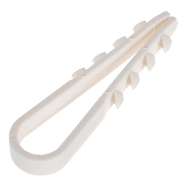 Дюбель-хомут для кабеля 11-18 мм белого цвета используется для крепления проводов, пучков проводов, гибких и жестких труб к бетону, природному камню, полнотелому кирпичу и пенобетону. Может использоваться как внутри, так и снаружи помещений. Применение хомутов-дюбелей позволяет исключить из процесса монтажных работ дюбеля и шурупы.