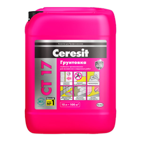 Водно-дисперсионная грунтовка* глубокого проникновения предназначена для обработки впитывающих, сильно впитывающих и непрочных оснований – бетона, цементных, известковых и гипсовых штукатурок, цементных, гипсовых и ангидритных стяжек, легкого и ячеистого бетона, кладок из керамического и силикатного кирпича, природного камня, древесностружечных и древесноволокнистых плит, гипсокартона и т.п. – перед нанесением выравнивающих штукатурных и напольных смесей, плиточных клеев, полимерных гидроизоляционных мастик, креплением систем теплоизоляции фасадов (СФТК) и т.д.