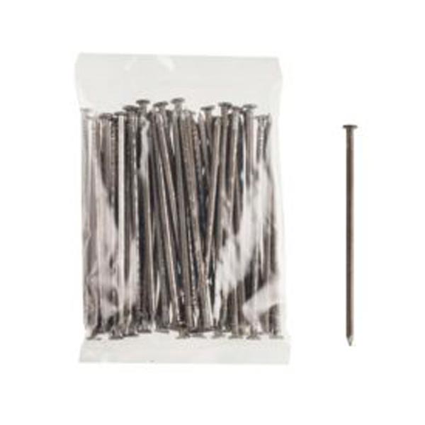 Гвоздь представляет собой длинный и прямой стержень с небольшими неровностями рядом со шляпкой, что улучшает качество соединения.