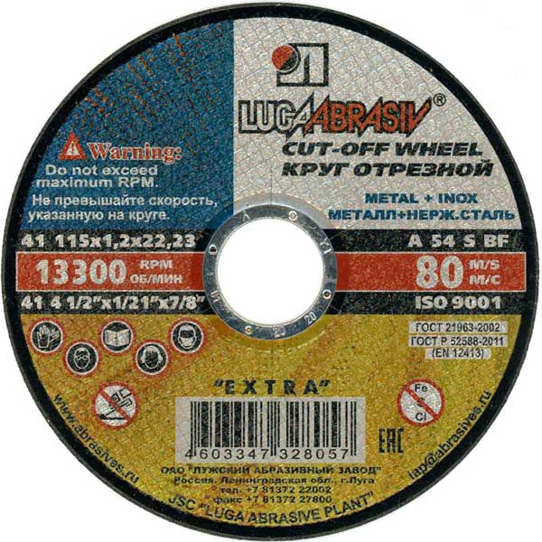 Круг отрезной по металлу Луга 115х22х1.2 мм