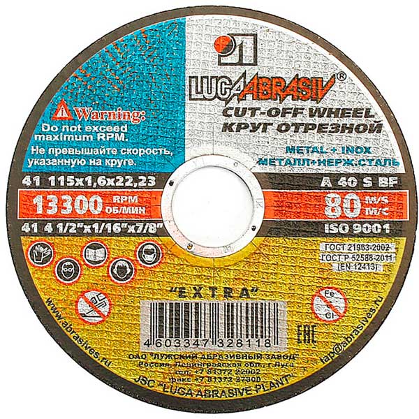 Круг отрезной по металлу Луга 115х22х1.6 мм
