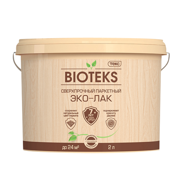 Лак акриловый паркетный Текс Bioteks основа LD бесцветный 2 л глянцевый