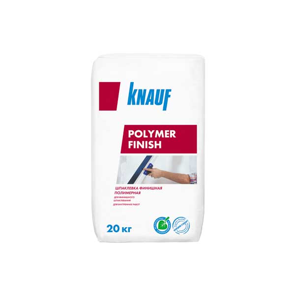 Финишная полимерная шпаклевка КНАУФ-Полимер Финиш на основе полимерного вяжущего белого цвета. Применяется внутри помещений для финишного шпаклевания тонким слоем бетонных поверхностей, гипсокартонных и гипсоволокнистых листов, гипсовых и цементных штукатурок и получения поверхности под покраску, обои и другие декоративные покрытия. Обладает высокой адгезией, пластичностью и трещиностойкостью. Отлично подходит для выравнивания слоем 0,2 до 4 мм. Благодаря микроволокнам не дает усадки. После затворения водой сохраняет рабочие свойства в течение 72 часов.